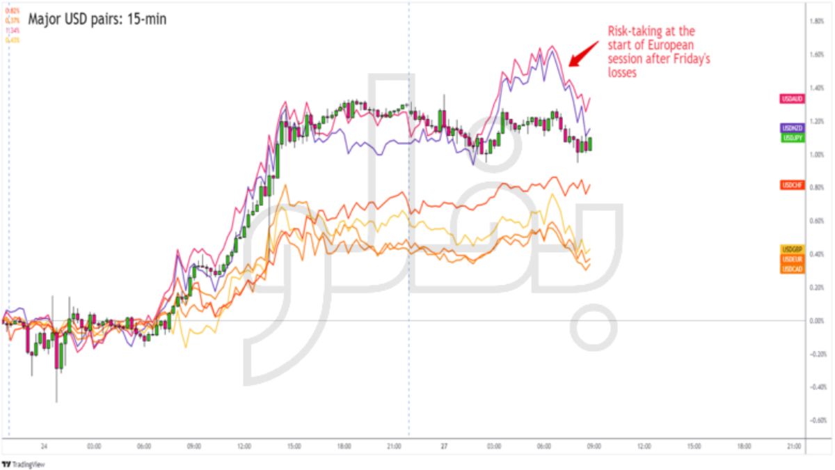 - قبل از اینکه معاملهگران اروپایی با ریسکپذیریهای محتاطانه اول هفته وارد شوند و به شکار معاملات بپردازند، دلار به بالاترین حد روزانه خود رسید و از بالاترین سطح سشن هفته گذشته ایالات متحده عبور کرد.