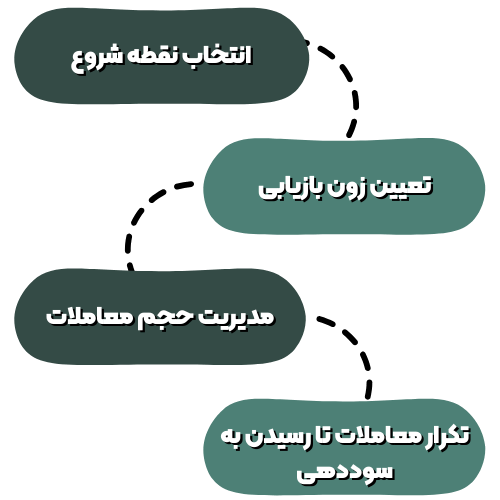 - با تکرار این فرآیند و مدیریت حجم معاملات، به نقطهای میرسید که سود شما از مجموع معاملات بیشتر از ضرر اولیه باشد.